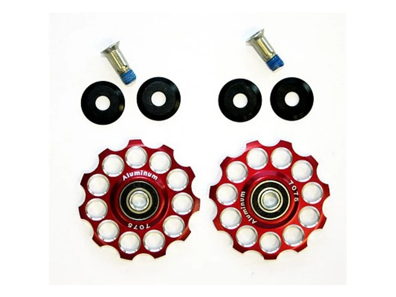 - 1 Set = 2 große Rädchen 11Zähne, 4 Alu Abdeckscheiben, 2 silberne Hülsen, 2 Schrauben