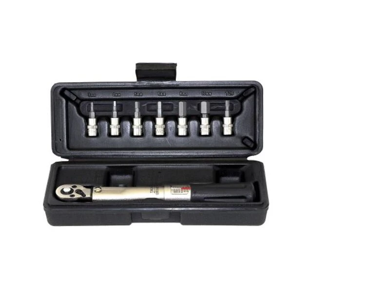 Mit dem Mighty Drehmomentschlüssel hat man günstig ein sehr gutes Werkzeug bei der Hand, um speziell auch empfindlichere Teile aus Carbon sicher zu montieren. Der Drehmomentschlüssel von Mighty hat einen Einstellbereich von 2 bis 24 Nm. Im Lieferumfang enthalten ist ein Innensechskant-Set von 3/4/5/6/8/10 mm sowie ein T25 Torx. Der Schlüssel wird in einer praktischen Displaybox geliefert.