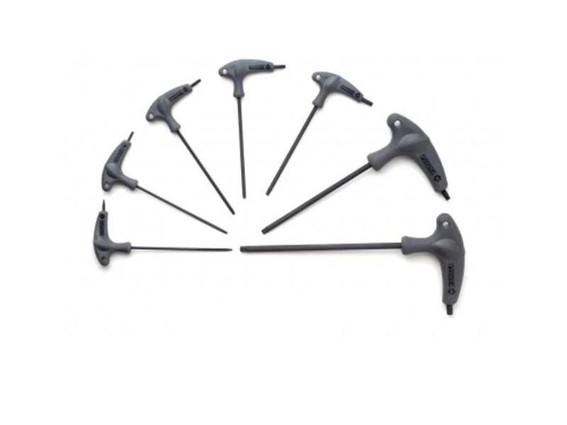 Um der wachsenden Zahl von Torx-Schrauben an modernen Fahrrädern gerecht zu werden, bietet Pedro´s dieses siebenteilige Set für professionelle Mechaniker an. Das Set besteht aus: T7, T10, T15, T20, T25, T30 und T40 Schlüsseln.