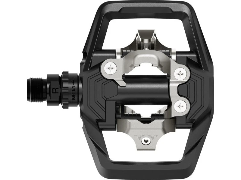 - breite, zweiseitige Aufstandsfläche für höhere Pedal-Schuh-Stabilität und Kraftübertragung